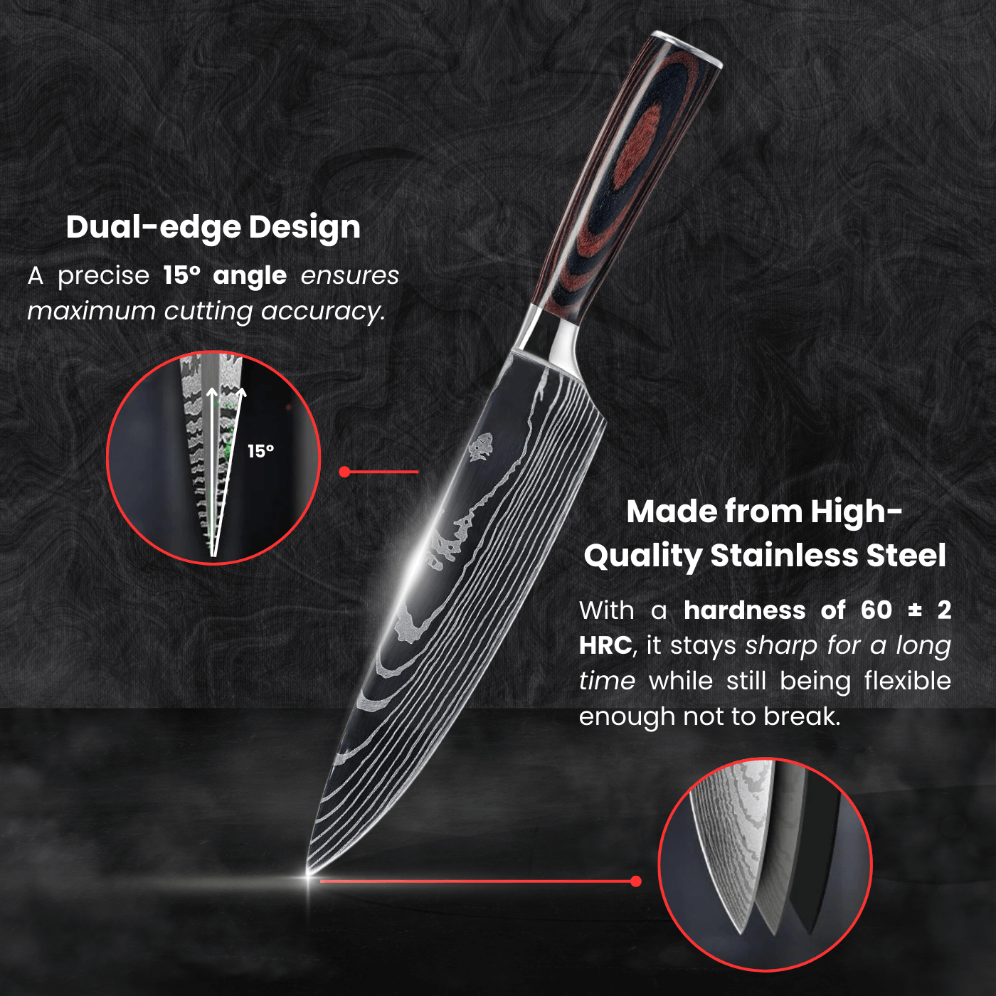 • Edge: Ultra-precise 15° angle per side (Dual-edge) for maximum cutting accuracy.